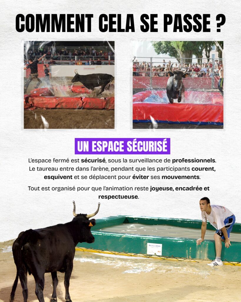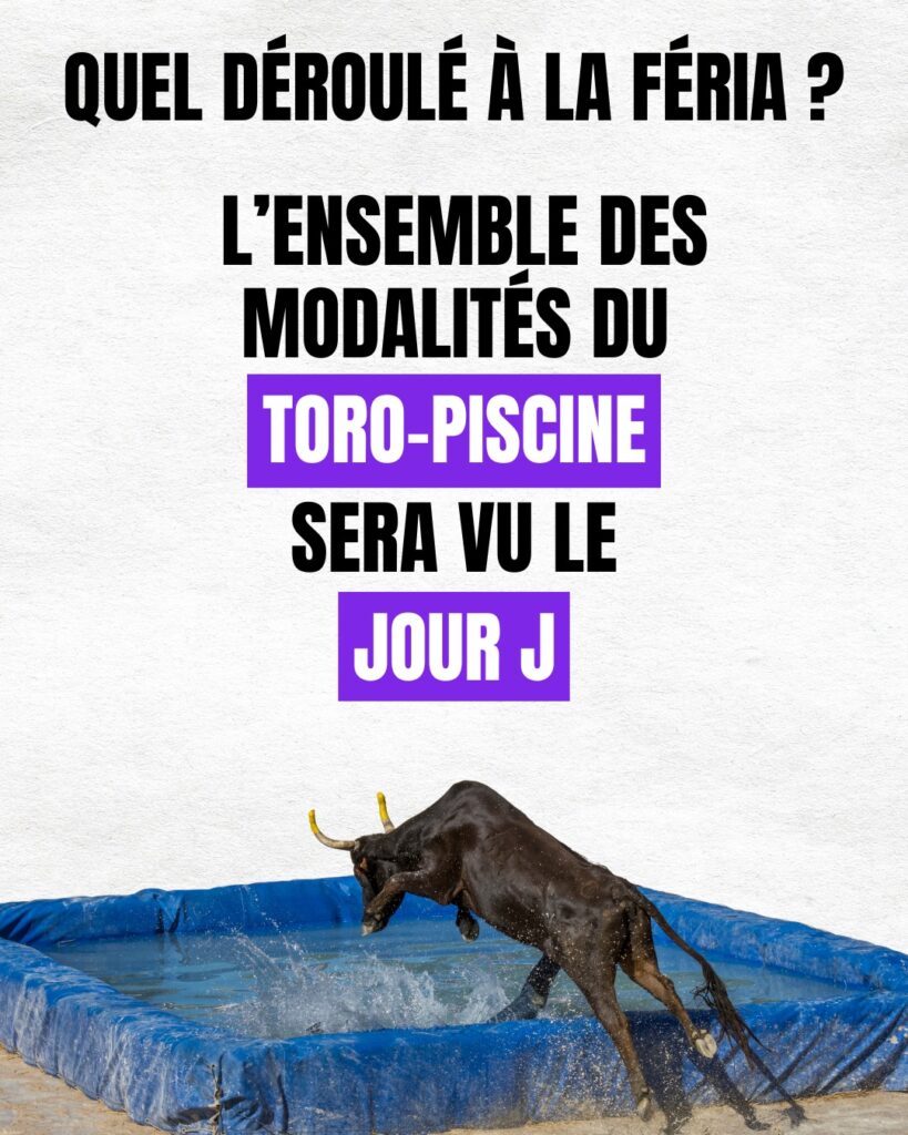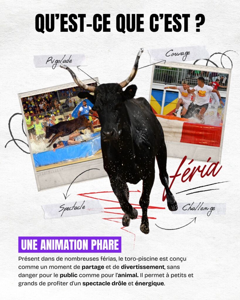 Pour cette 2ème édition, on vous réserve une nouvelle animation inédite le dimanche 5 juillet : un toro-piscine !